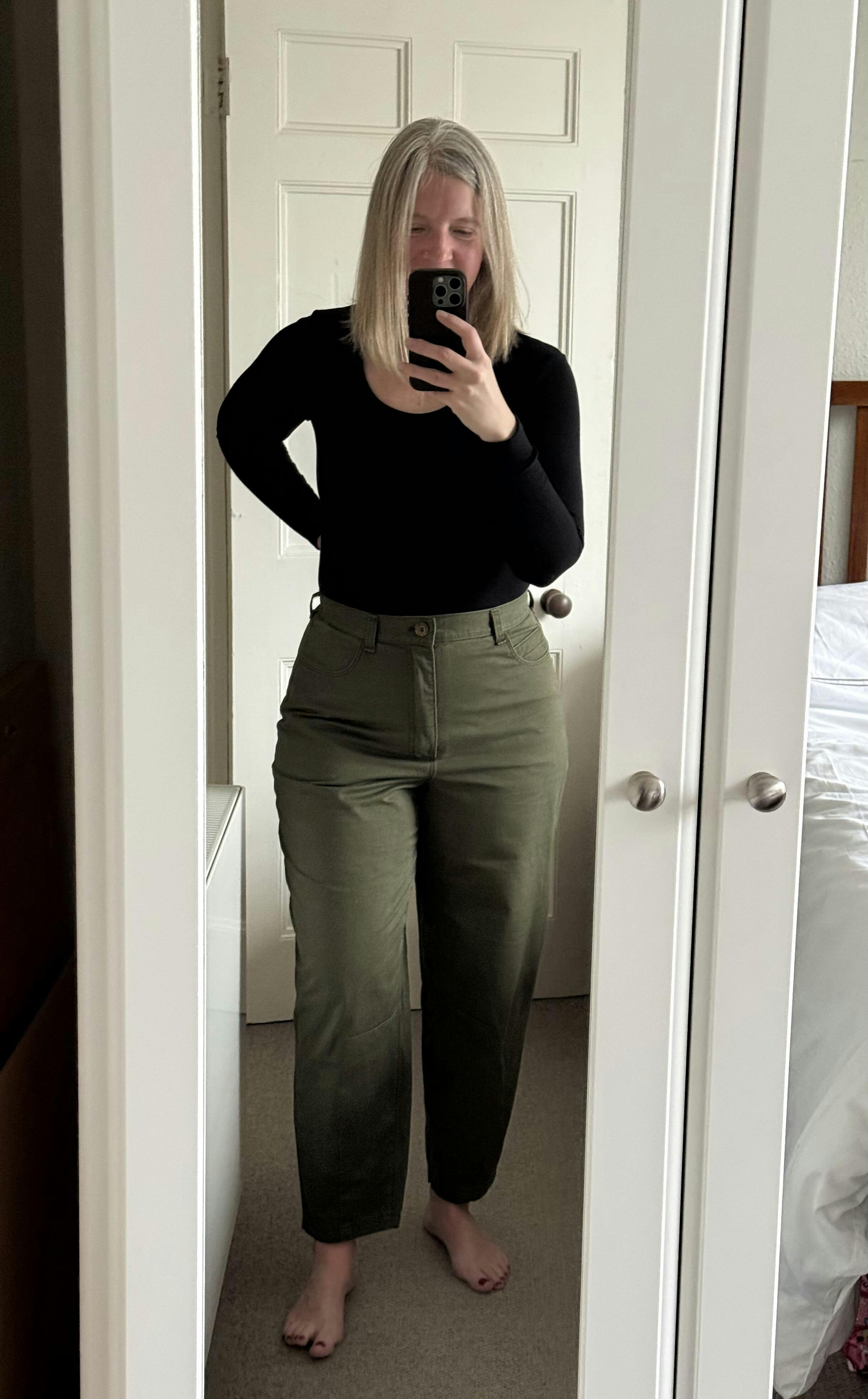Buy the Belleville Jeans sewing pattern from Itch to Stitch. Whether you call them barrel jeans, balloon jeans, carrot jeans, or tapered jeans, the bottom line is that these pants are worthy of all the hype. The Belleville Jeans feature a high waist, classic five-pocket styling, a pocket stay to keep the pockets in place and trim the tummy, darts at the knees and front hem, and an above-ankle length. Perfect for a coffee break with friends or a casual Friday at the office, they are a versatile addition to any wardrobe.