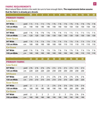 Fabric requirements: 54" (135 cm) wide fabric: Long sleeve, 1 1/2 - 2 1/2 yd (140 - 230 cm) // 3/4 sleeve, 1 3/8 - 2 3/8 yd (120 - 220 cm) // Short sleeve, 1 1/8 - 2 1/8 yd (100 - 200 cm) // Cap sleeve, 1 1/8 - 2 1/8 yd (100 - 190 cm).