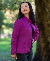 Buy the Shimla Jacket sewing pattern from Itch to Stitch. This fully lined jacket has princess seams and cup sizes for an exceptional fit. With two collar options and optional ruffles on the pocket flaps and sleeve cuffs, you can create a look tailored to your style. Use a lightweight fabric like linen for a breezy spring jacket, or opt for a cosy wool to stay warm in cooler weather.