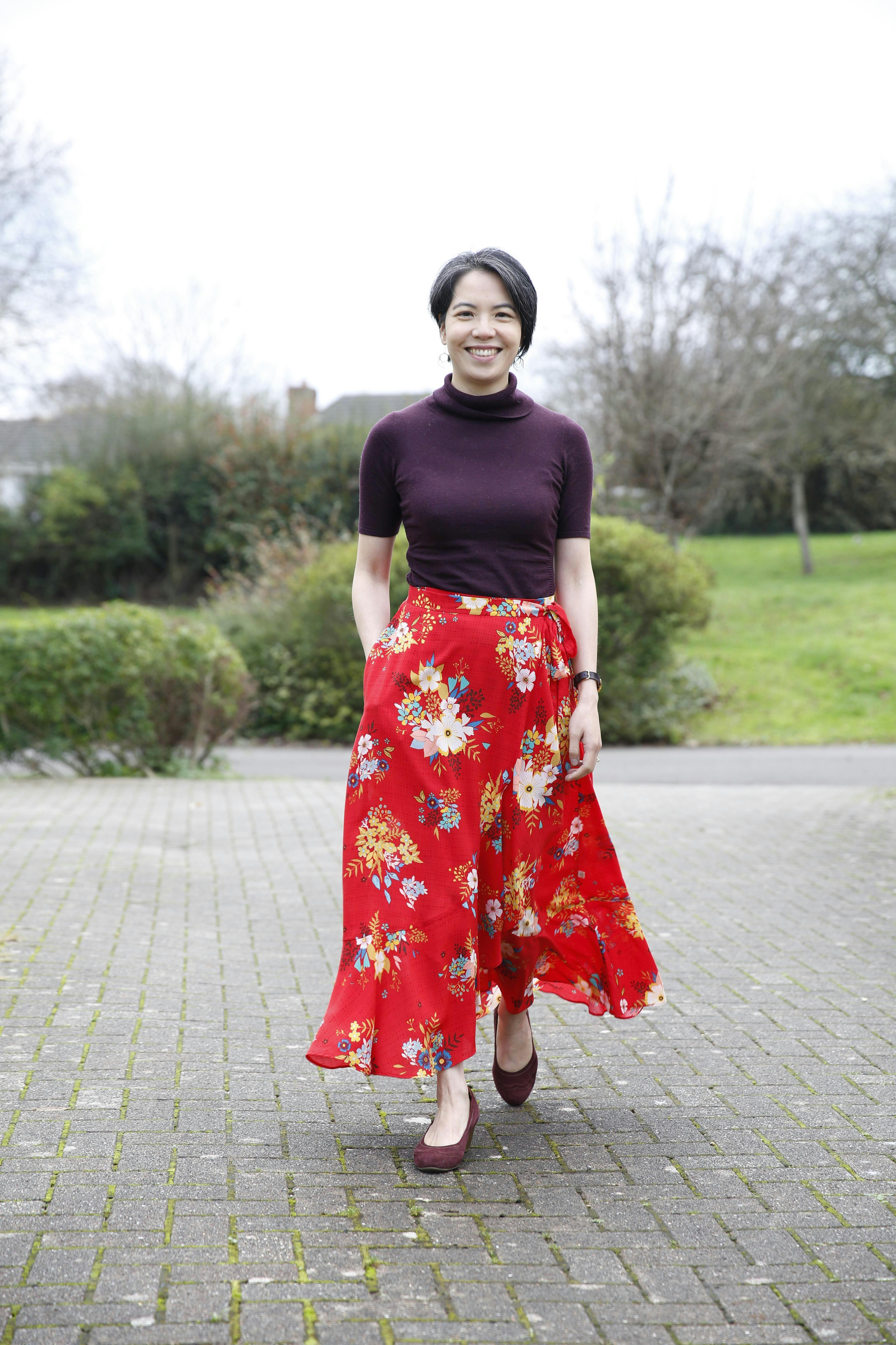 Buy the Zina Wrap Skirt sewing pattern from Liberty Sewing Patterns. Pretty and versatile, this skirt can be constructed in a mini, midi or maxi length, with or without a ruffle.