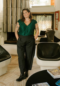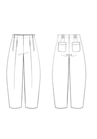 Buy the Andrea Trousers sewing pattern from Maison Fauve. Andrea is a barrel leg trouser with a gently rounded shape through the leg, tapering at the ankle – a perfect blend of modern edge and tailored elegance.