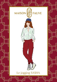 Buy the Sasha Joggers sewing pattern from Maison Fauve. Sasha is a pair of jogger trousers that combine comfort with elevated finishes. The elasticated waistband is built into the front pieces to avoid unwanted bulk, while the back is shaped with a yoke to give a neat fit. The trousers feature Italian pockets, with the option to add flap patch pockets on the sides. The leg is straight – neither too slim nor too loose – and the hem can be finished to suit your preference: with ribbing, at ankle length, or extended over the instep.