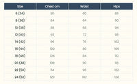 Sizing: EU 34 – 52 (approx. UK 6 – 22, based on our standardised size chart). Please also check the designer's size chart and finished garment measurements.