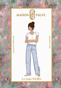 Buy the Worn Jeans sewing pattern from Maison Fauve. A slightly loose fit, gently lowered waistline, and that 90s style we never tire of: Worn are the jeans you'll feel like you've always had in your wardrobe, the pair you’ll love wearing for years, that will develop character beautifully over time. The cut is straight and comfortable, with a slightly wider hem designed to break perfectly over your shoes. The pattern includes all the classic jeans details: topstitching, a shaped back yoke, patch pockets, a coin pocket…it's all there!