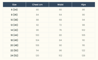Sizing: EU 34 – 52 (approx. UK 6 – 22, based on our standardised size chart). Please also check the designer's size chart and finished garment measurements.