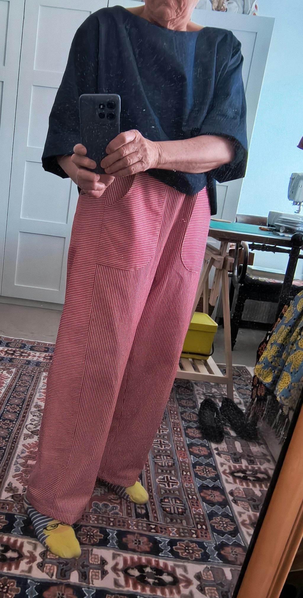 Buy the Kite Pants sewing pattern from Matchy Matchy Sewing Club. The Kite Pants are all about easy sewing and effortless style! Designed with beginners in mind (but great for all skill levels), this pattern comes together quickly and is packed with playful details. The high-waisted, ankle-length fit features a subtly curved leg for a relaxed, modern shape (think barrel-lite). A unique side inset detail makes the perfect canvas for patchworking, colour-blocking, or using up those favourite fabric scraps. This fun silhouette includes two front pockets and two back pockets. The elastic waistband keeps things comfy, so you can wear them all day, every day. The designer has even included a quilted version for the cosiest winter pants ever. Whether you're lounging, layering, or heading out the door, the Kite Pants are as fun to make as they are to wear and are sure to become a go-to in your handmade wardrobe.