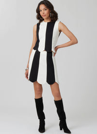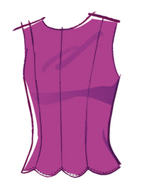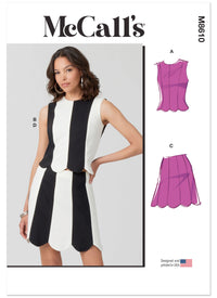 Buy the M8610 Misses' Fitted Knit Top and Skirt sewing pattern from McCall's. Sleeveless knit top and skirt have scalloped hem and invisible zipper closure. Views B and D have contrast panels.