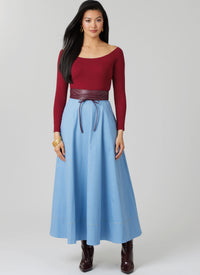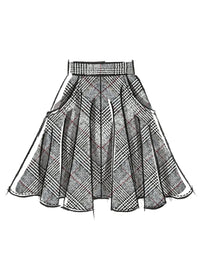 Buy the M8609 Misses' Skirt sewing pattern from McCall's. Flared skirts have side front pockets, invisible back zipper and hook and eye closure. View A skirt is above mid knee length. View B skirt is mid-calf length. View C skirt is above ankle length.