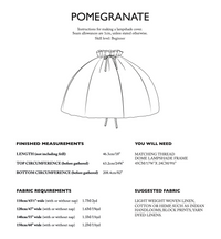 Buy the Pomegranate Lampshade Cover sewing pattern from Merchant & Mills. A lampshade cover echoing childhood memories of 70s décor. The domed pomegranate shape is a great vehicle for lightweight handloom cloth, and delicate details like the drawstrings and ruffle make it fresh and current for any handmade interior.