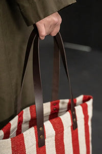 The Runner Tote Bag is a free sewing pattern from Merchant & Mills. Instructions for making a simple tote from a Merchant & Mills jute runner.