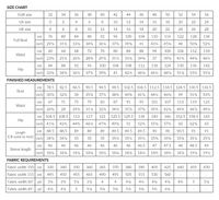 Fabric requirements: The fabric requirements include a 5% allowance for shrinkage. Note that the fabric consumption may be greater for fabrics with a pattern and for fabrics that need to be cut in one direction.