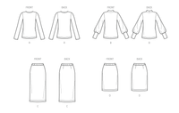Buy the N6815 Misses' Knit Tops and Skirt In Two Lengths sewing pattern from New Look. Easy to sew knit tops and skirt are designed and sized for stretch knits only. Top has straight or cuffed sleeve options. Pull-on skirt in two lengths has elastic waist.