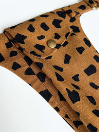 The design consists of a doubled back panel with an integrated flap, onto which a cargo pocket is stitched. The belt pieces are attached to either side of the back panel. The adjustable buckle on the strap allows you to easily adapt the fit to your outfit.