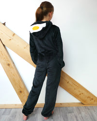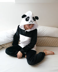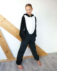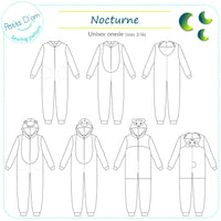 Buy the Child/Teen Nocturne Onesie sewing pattern from Petits D'om. Nocturne is a hooded onesie pyjama with a front zipper and optional pockets. The sleeves and legs are finished with ribbing or jersey bands. Nocturne can be sewn in panda, penguin, frog or plain versions. If you are sewing the plain version, you could also choose an animal print fabric to sew a leopard, zebra or dalmatian!