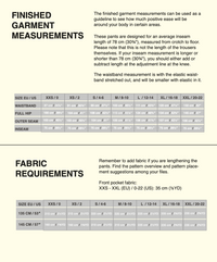 Pants: 135 cm (53") wide fabric: 215 - 235 cm (2 1/2 - 2 3/4 yd) // 145 cm (57") wide fabric: 160 - 235 cm (1 3/4 - 2 3/4 yd).