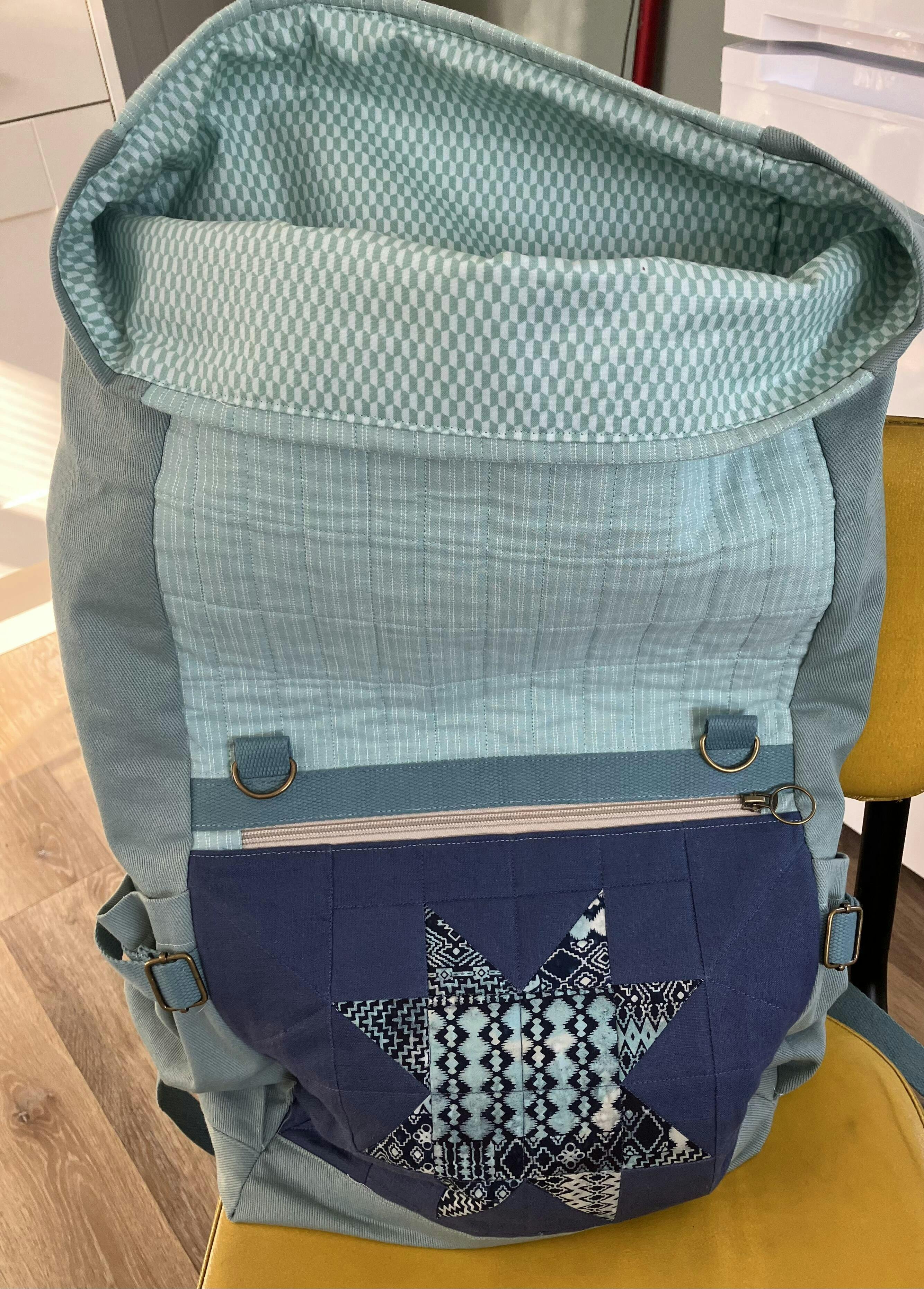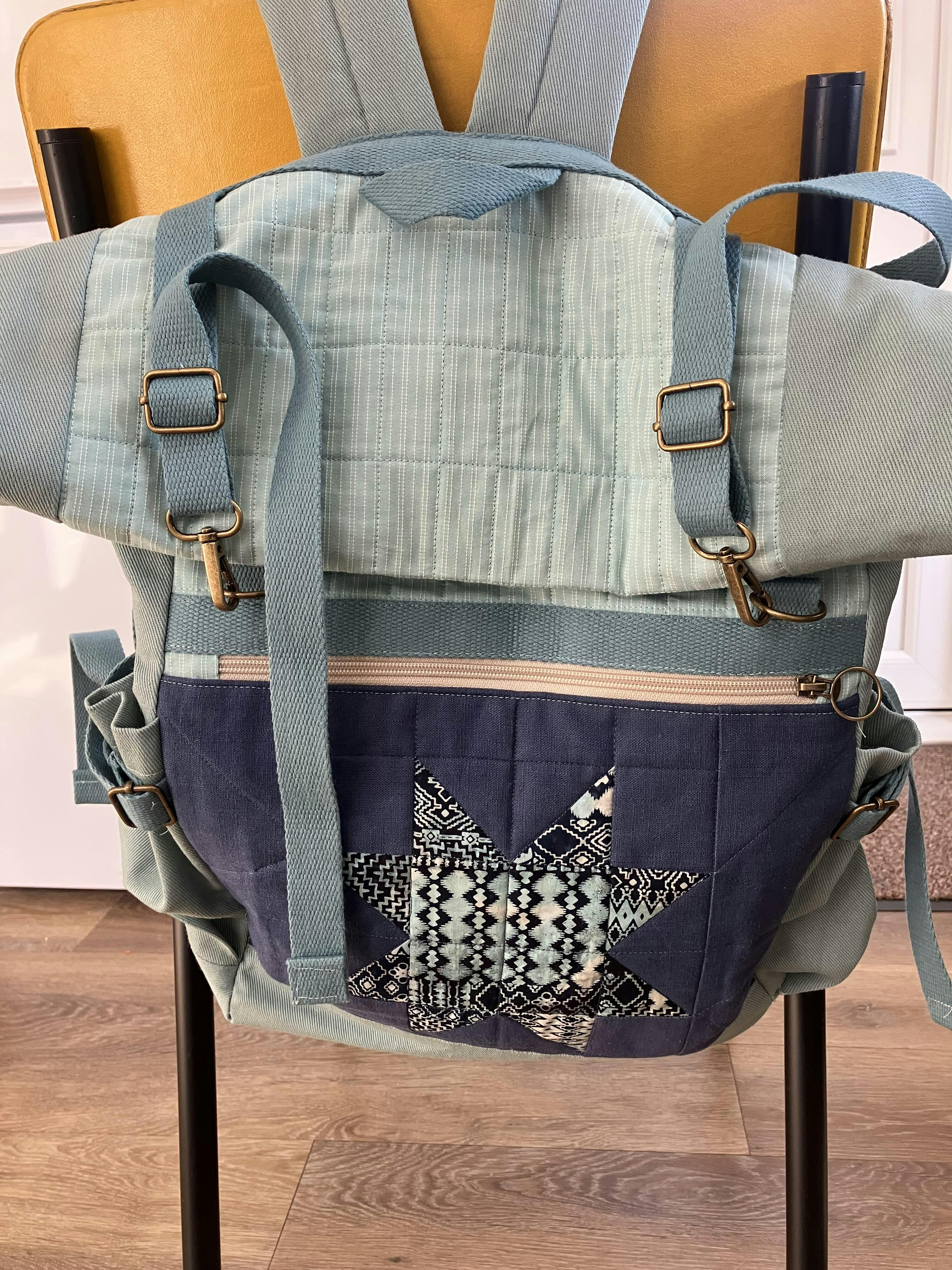 Buy the Elevenses Backpack sewing pattern from Sew Liberated. The Elevenses Backpack, with its unique quilted panels, is a functional work of art. Its huge, adjustable roll top design fits everything you need for adventures large and small. Pop a water bottle into one of the side pockets, tuck a journal into the front zipper pocket, and head out to take on the world with the help of the comfortable padded straps and back panel.