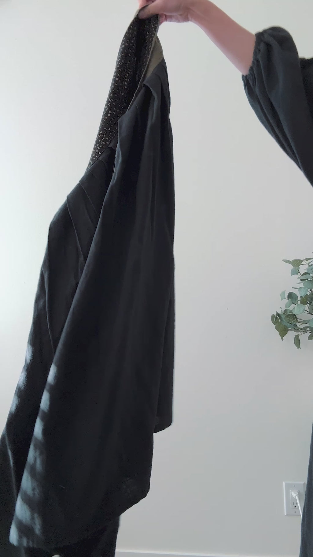 Suggested fabrics: Cotton, linen, jersey, chambray or denim, rayon, flannel or wool. The designer advises against overly structured fabrics for this oversized design.