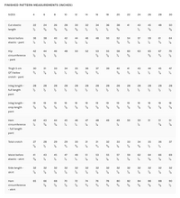 Full length pant: 112 cm (44") wide fabric: 3.4 - 4.5 m (3.7 - 4.9 yd) // 148 cm (58") wide fabric: 2.6 - 2.8 m (2.9 - 3 yd).