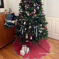 Buy the Connie Tree Skirt sewing pattern from Syd Graham Patterns. The Connie Tree Skirt is a reversible quilted tree skirt with a bound scalloped edge and your choice of either bow or button closures. This pattern comes in four sizes, so whether you have a mini faux fir or a 10-foot genuine conifer, your tree can be skirted to perfection.