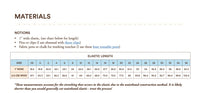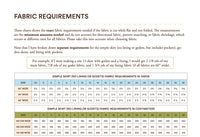 Fabric requirements: The requirements are the minimum amounts needed and do not account for directional fabric, pattern matching, or fabric shrinkage.
