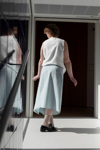 The Kirsti Skirt has been designed using zero waste cutting techniques. You won't need any paper pattern pieces. Instead, you will draw the pattern pieces directly onto your fabric following the instructions.