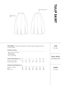 Buy the Tulip Skirt sewing pattern from The Assembly Line. This wide tulip-shaped skirt has a zipper opening at the back and in-seam pockets.