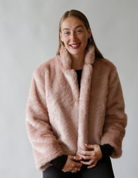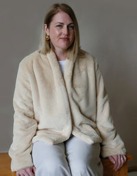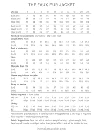 Suggested fabrics: Faux furs with a medium weight backing. Lighter weight, fluid faux furs will create a cardigan rather than a jacket effect, and will be trickier to sew.