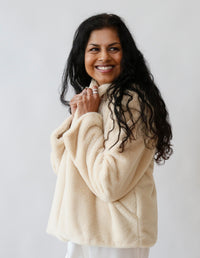 Buy the Faux Fur Jacket sewing pattern from The Maker's Atelier. A pared back jacket style designed to make the most of faux fur fabric. The pattern includes a choice of a shawl or notch collar and has a one-piece sleeve. The jacket is fully lined and there are pockets in the side seams.