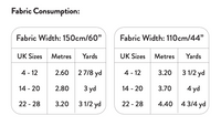 110 cm (44") wide fabric: 3.2 - 4.4 m (3 1/2 - 4 3/4 yd).