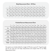 Sizing: UK 6 – 28 (approx. UK 6 – 26, based on our standardised size chart). Please also check the designer’s size chart and finished garment measurements.