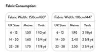 110 cm (44") wide fabric: 1.9 - 2.5 m (2 1/8 - 2 3/4 yd).