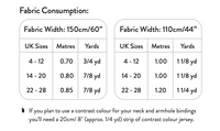150 cm (60") wide fabric: 0.7 - 0.85 m (3/4 - 7/8 yd).