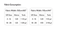 110 cm (44") wide fabric: 1.4 - 1.9 m (1 1/2 - 2 1/8 yd).