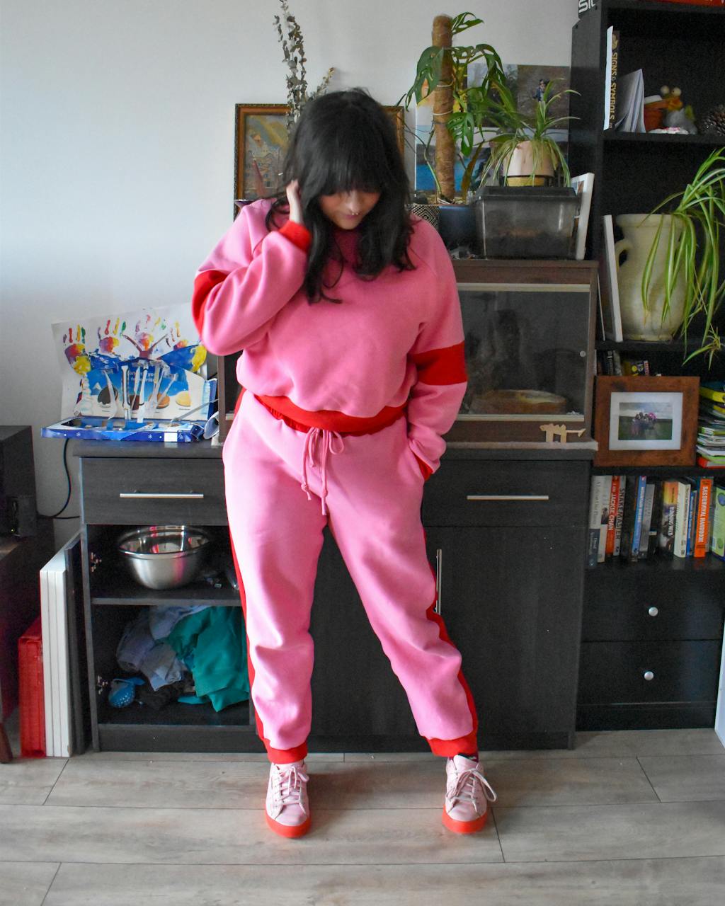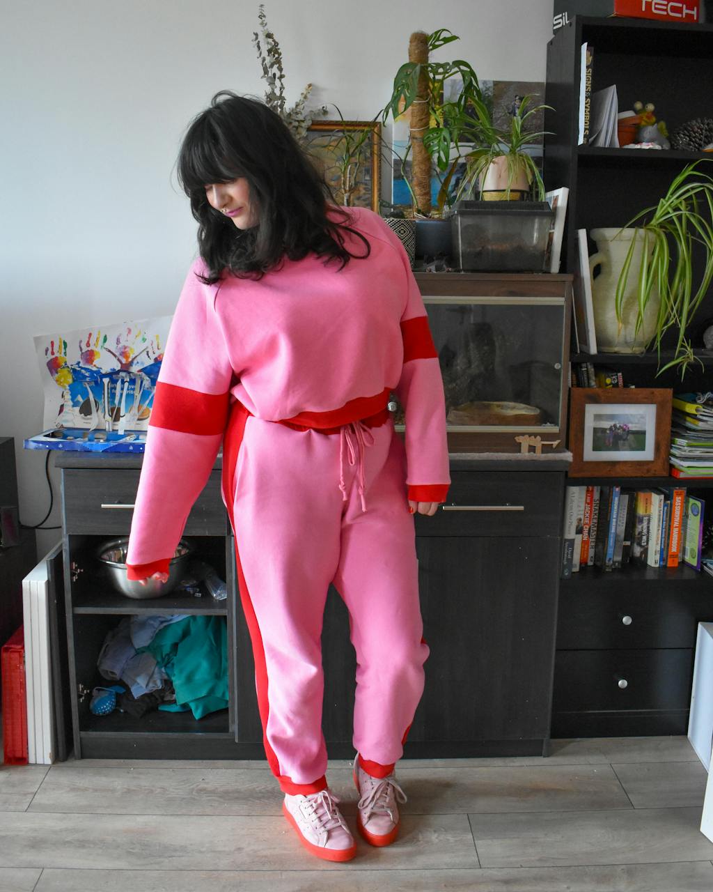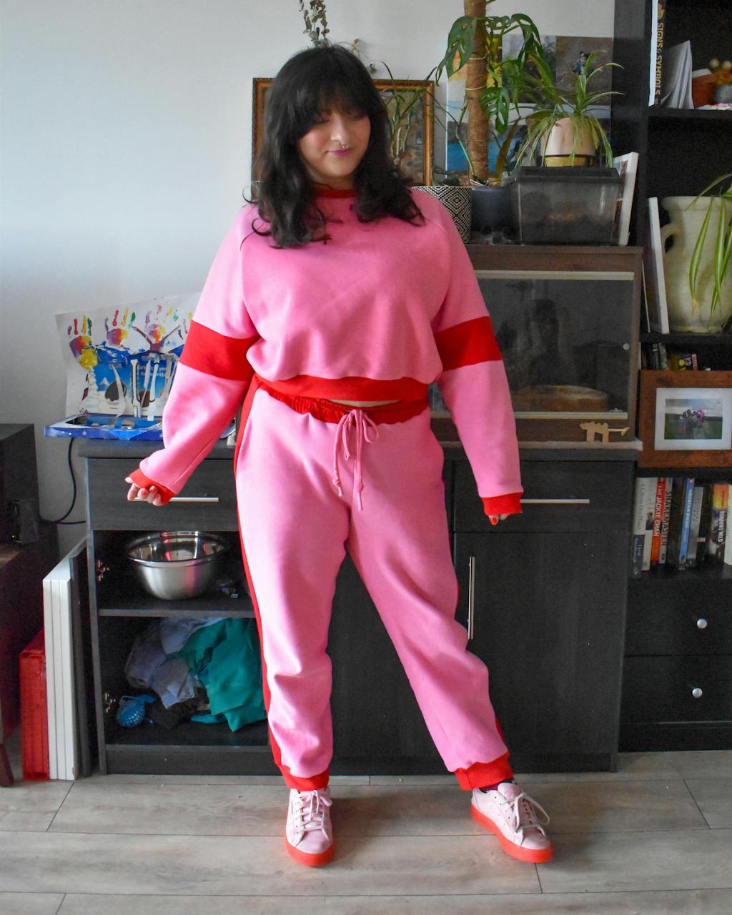 Suggested fabrics: Sweatshirt fleece or French terry (loopback). For the joggers version, you’ll also need ribbing for the cuffs.