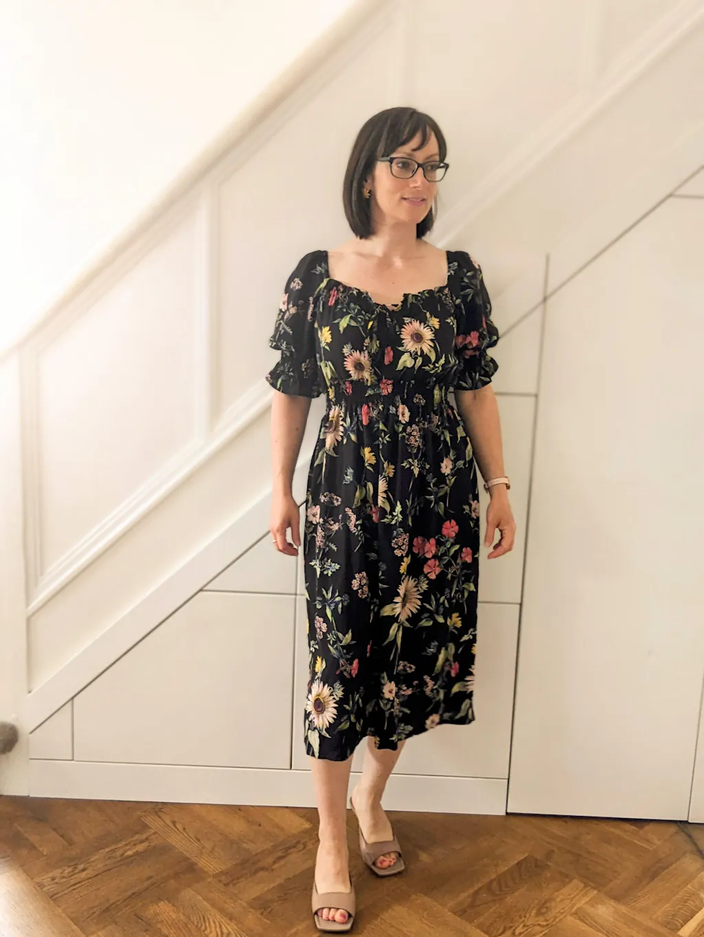 – Blousy bodice and floaty skirt cinched in with a shirred waistline