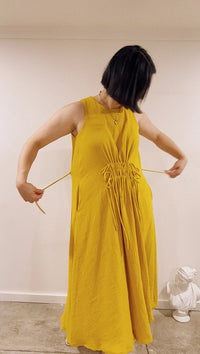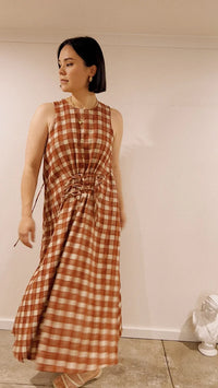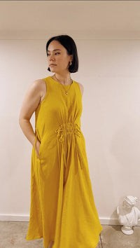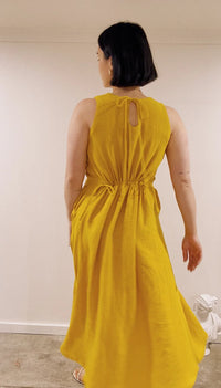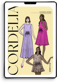 Buy the Cordelia Dress and Blouse sewing pattern from Veronica Tucker. This sleeveless dress and blouse is all about the corded ruching waist detail, which defines the waist without being figure hugging. The design features a round neckline, keyhole back opening, fully faced bodice, and side pockets. Choose from three length options: blouse, above knee, and midi.