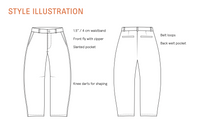 Suggested fabrics: Bottom weight woven cotton, linen, canvas or denim.